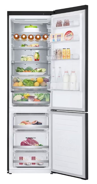 Ražotājs: LGUzstādīšanas veids: Free standingVeids: Fridge with bottom freezerDzesēšanas tehnoloģijas veids: Full no frostStandartizēts platums: 60Augstums: 203Platums: 59.5Dziļums: 68.2Krāsa: BlackPapildu informācija: Matt colorJAUNA Energoefektivitātes klase: DAukstā atvilktne: Gandrīz 0°C zonaPārveidojama saldētava-ledusskapis: navVadība: External touch control LCDIkgadējais elektroenerģijas patēriņš: 215Ledusskapja izmantojamā ietilpība: 277Saldētavas izmantojamā ietilpība: 107Mitruma saglabāšanas tehnoloģija: navViegla durvju aizvēršana: navMetalizēta aizmugurējā siena: irDurvju rokturis: navAtvilktne augļiem/dārzeņiem ar mitruma regulēšanas funkciju: irLedus ģenerators: NoKompresora veids: InverterPudeļu plaukts: YesAtvērto durvju signāls: irIndividuāli pielāgojami durvju plaukti: navĀtrās atdzesēšanas funkcija ledusskapim: irMaināms durvju atvēršanas virziens: irApgaismojums: LEDSaldētavas atvilktņu skaits: 3Ātrās sasaldēšanas funkcija saldētavā: irSasaldēšanas jauda diennaktī/24 h: 10Maksimālais aukstuma uzturēšanas ilgums saldētavā, pārtrūkstot elektropadevei: 9Trokšņa līmenis: 35Trokšņu līmeņa klase: BKlimata klase: SN-TStandartizēts augstums: 205Wi-Fi: ir