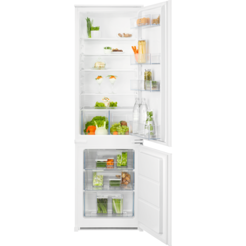 Ražotājs: ElectroluxUzstādīšanas veids: Built inVeids: Fridge with bottom freezerDzesēšanas tehnoloģijas veids: Less frostAugstums: 177.2Platums: 54Dziļums: 54.9Krāsa: WhiteAukstā atvilktne: NoVadība: MechanicalJAUNA Energoefektivitātes klase: FEnergoefektivitātes klase: A+Ikgadējais elektroenerģijas patēriņš: 291Ledusskapja izmantojamā ietilpība: 195Saldētavas izmantojamā ietilpība: 72Mitruma saglabāšanas tehnoloģija: irEņģu veids: SlidingViegla durvju aizvēršana: navMetalizēta aizmugurējā siena: navDurvju rokturis: navLedus ģenerators: NoKompresora veids: InverterVentilators: navGaisa attīrīšanas filtrs: navAntibakteriālā tehnoloģija: NoPudeļu plaukts: NēDalāms stikla plaukts: navDurvju slēdzene: navAtvērto durvju signāls: navTemperatūras paaugstināšanās indikators: navEko režīms: navBrīvdienu funkcija: navIndividuāli pielāgojami durvju plaukti: navĀtrās atdzesēšanas funkcija ledusskapim: navMaināms durvju atvēršanas virziens: irApgaismojums: LEDSaldētavas atvilktņu skaits: 3Pilnībā izņemamas atvilktnes un vidējie stikla plaukti saldētavā: irSaldētavas saldēšanas temperatūra: -18°CĀtrās sasaldēšanas funkcija saldētavā: irSasaldēšanas jauda diennaktī/24 h: 4Maksimālais aukstuma uzturēšanas ilgums saldētavā, pārtrūkstot elektropadevei: 22Trokšņa līmenis: 35Trokšņu līmeņa klase: BKlimata klase: SN-TStandartizēts augstums: 180Standartizēts platums: 60