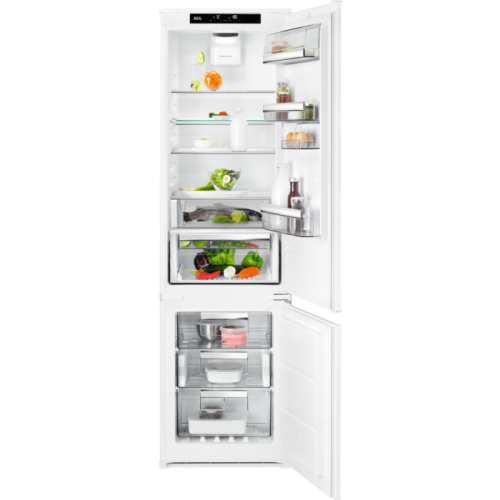 Ražotājs: AEGUzstādīšanas veids: Built inVeids: Fridge with bottom freezerDzesēšanas tehnoloģijas veids: No frostAugstums: 188.4Platums: 54Dziļums: 54.9Krāsa: WhiteAukstā atvilktne: Gandrīz 0°C zonaVadība: Internal touch control LCDJAUNA Energoefektivitātes klase: EEnergoefektivitātes klase: A++Ikgadējais elektroenerģijas patēriņš: 235Ledusskapja izmantojamā ietilpība: 216Saldētavas izmantojamā ietilpība: 62Mitruma saglabāšanas tehnoloģija: irAukstās atvilktnes teleskopiskās sliedes: irEņģu veids: SlidingViegla durvju aizvēršana: navMetalizēta aizmugurējā siena: navDurvju rokturis: navAtvilktne augļiem/dārzeņiem ar mitruma regulēšanas funkciju: navLedus ģenerators: NoKompresora veids: InverterVentilators: irGaisa attīrīšanas filtrs: irAntibakteriālā tehnoloģija: NoPudeļu plaukts: NēDalāms stikla plaukts: irDurvju slēdzene: navAtvērto durvju signāls: irTemperatūras paaugstināšanās indikators: irEko režīms: navBrīvdienu funkcija: irIndividuāli pielāgojami durvju plaukti: navĀtrās atdzesēšanas funkcija ledusskapim: irMaināms durvju atvēršanas virziens: irApgaismojums: LEDSaldētavas atvilktņu skaits: 3Pilnībā izņemamas atvilktnes un vidējie stikla plaukti saldētavā: irSaldētavas saldēšanas temperatūra: -18°CĀtrās sasaldēšanas funkcija saldētavā: irSasaldēšanas jauda diennaktī/24 h: 10Maksimālais aukstuma uzturēšanas ilgums saldētavā, pārtrūkstot elektropadevei: 21Trokšņa līmenis: 36Zemākā darba temperatūra: 10.0Klimata klase: SN-N-ST-TStandartizēts augstums: 190Standartizēts platums: 60