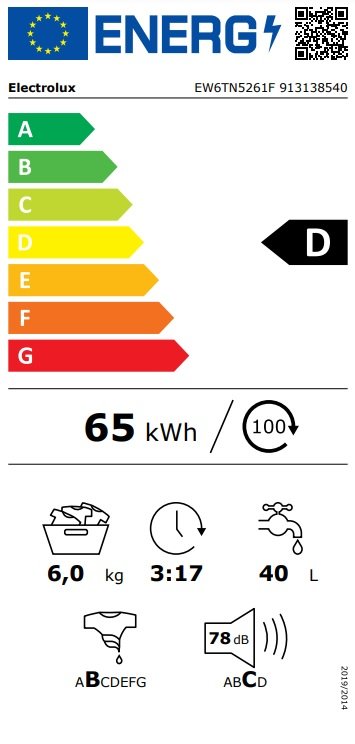 Ražotājs: ElectroluxUzstādīšanas veids: Free standingVeļas mašīnas veids: Top loadMazgāšanas ietilpība: 6Maksimālais apgriezienu skaits: 1200JAUNA Energoefektivitātes klase: DElektroenerģijas patēriņš 100 ciklos: 65Ūdens patēriņš 1 ciklā: 40Trokšņu līmeņa klase: CTrokšņa līmenis: 78Cikla ilgums: 197Centrifūgas efektivitātes klase: BAutomātiskā veļas nosvēršanas sistēma: irAutomātiskā dozēšanas tehnoloģija: navViedā mazgāšanas tehnoloģija: NoAtvilktne kapsulām: NėraTvaika tehnoloģija: Ar tvaikuMotora veids: UniversalBunduļa pozicionēšana: navBunduļa izgaismošana: navWi-Fi: navPutu noteikšanas sistēma: irProgrammu skaits: 14Ātrās mazgāšanas programma: irLaika taupīšanas funkcija: irVilnas mazgāšanas sertifikāts: irBērnu drošības aizsardzība: irStandartizēts augstums: 95Standartizēts platums: 40Augstums: 90.8Platums: 39.7Dziļums: 59.9Maksimālais dziļums: 59.9Krāsa: White